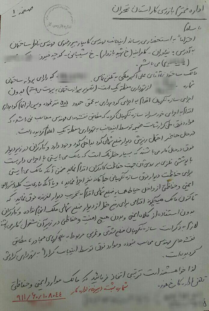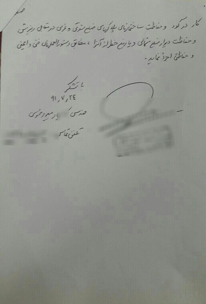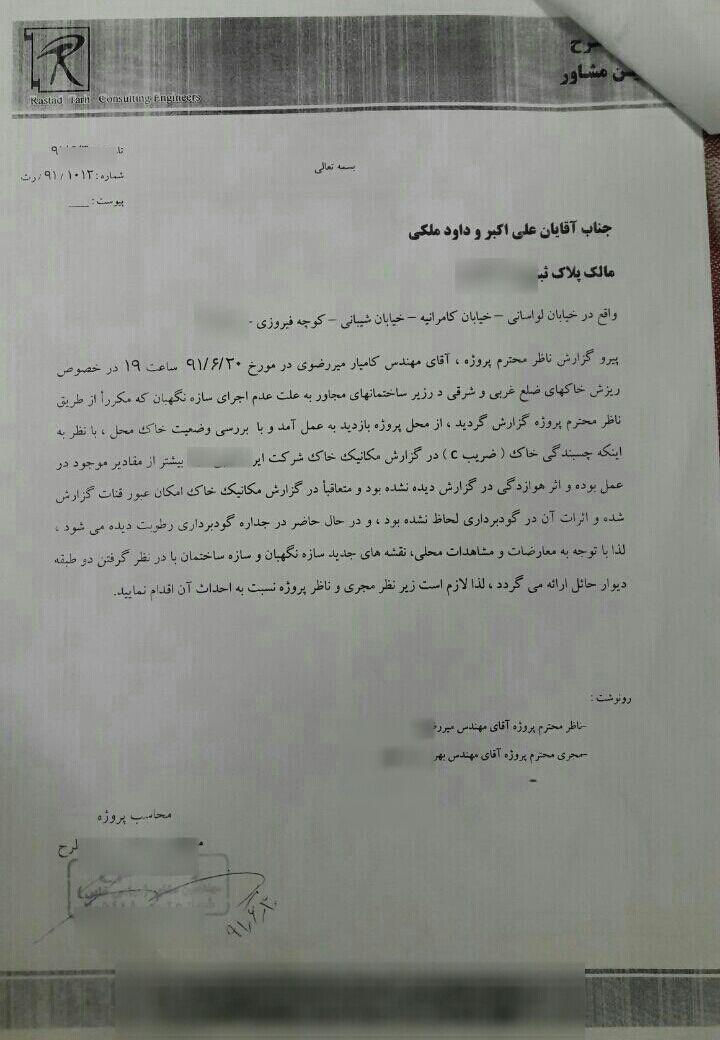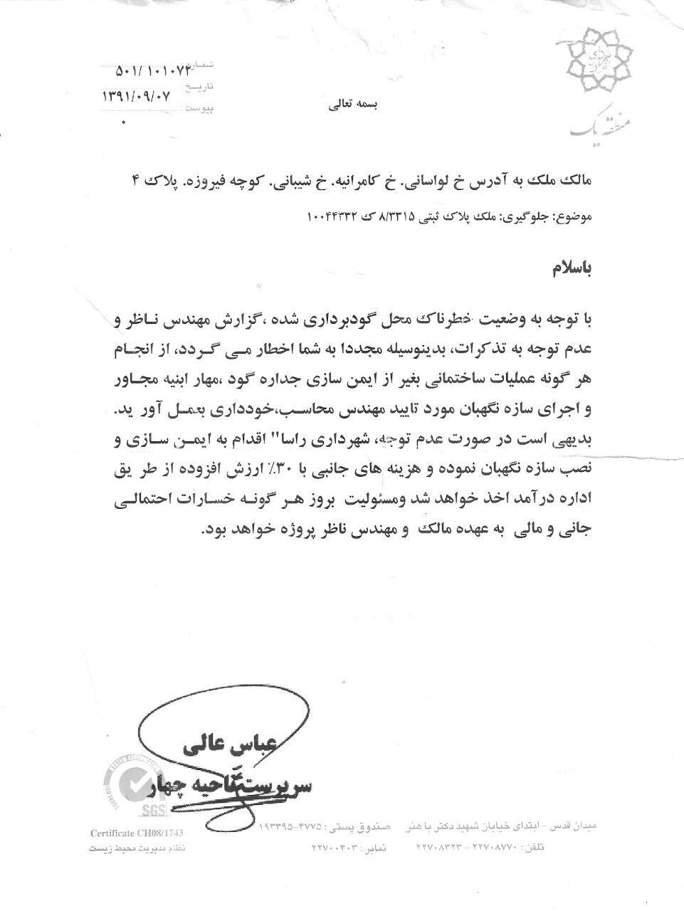 مکاتبات و مستندات مهندس ناظر گود کامرانیه