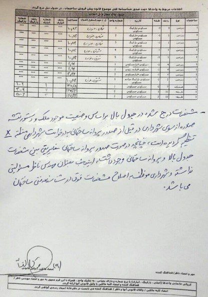 - دو تصویر در این قسمت برای شما قرار می دهیم که در تصویر شماره 1 فرم اعلام مشخصات واحدهای قابل احداث، و در تصویر شماره 2 اطلاعات مربوط به واحدهای آپارتمان، جهت صدور شناسنامه فنی ملکی موضوع قانون پیش فروش درج شده است.