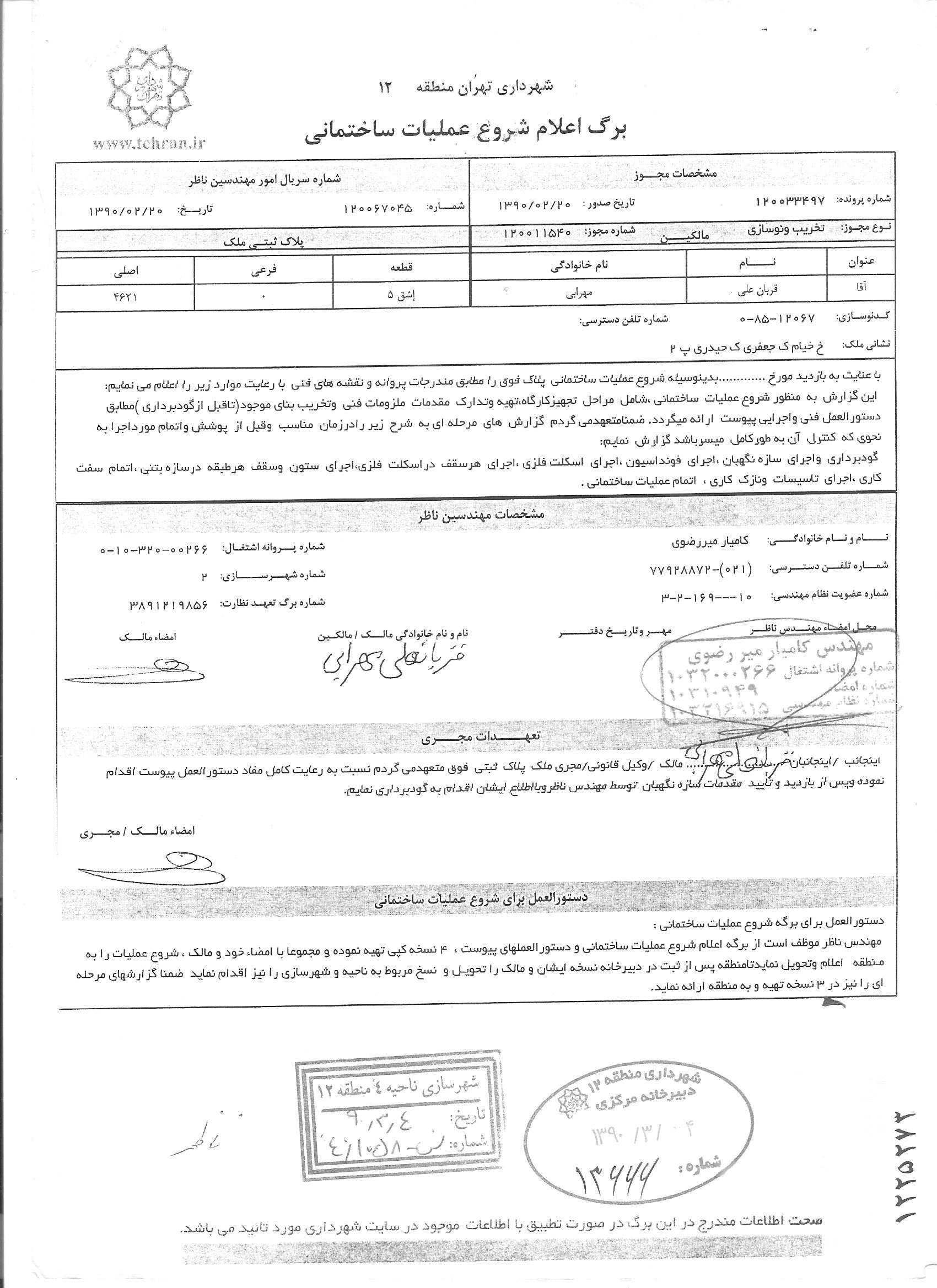 فرمهای نمونه جهت آموزش در طول دوره آموزش حقوق مهندسی در ساخت و ساز شهری ایران